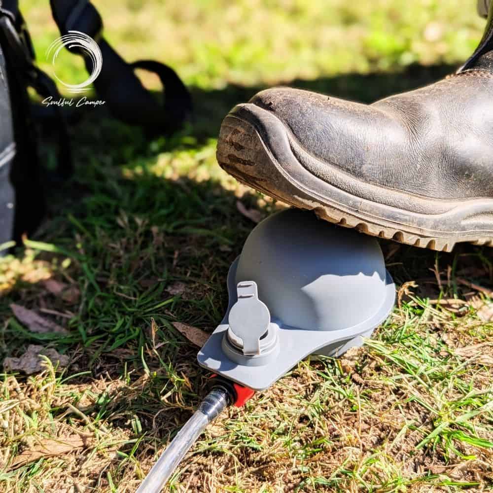 A few steady foot pumps give great water flow. No need to go full CrossFit on it, over-pumping can damage the seals.