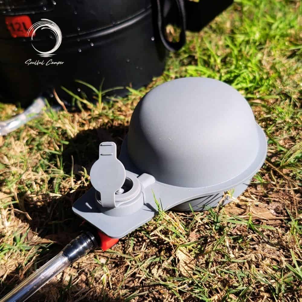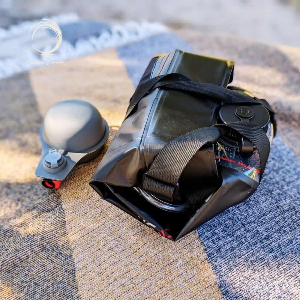 The Soulful Camper Sun Shower holds 12L, just the right amount for a full-body rinse with solar heated water. Powered by a foot pump and built-in pressure system, there’s no need to hang it or find high ground for gravity. The flexible hose and nozzle give you full control, and a built-in thermometer lets you know when the sun’s done its job.
