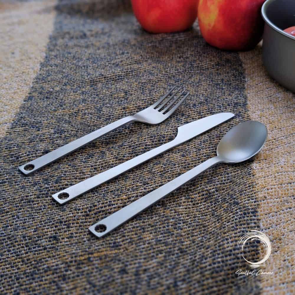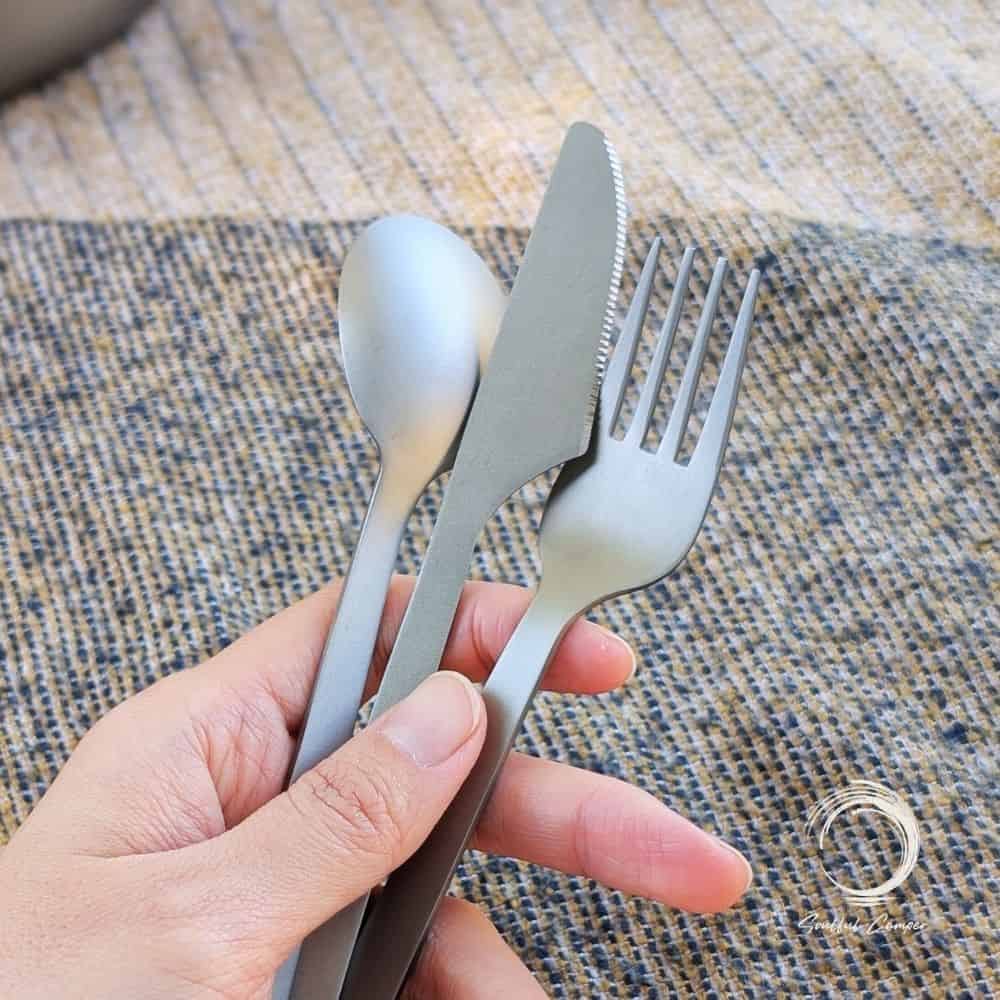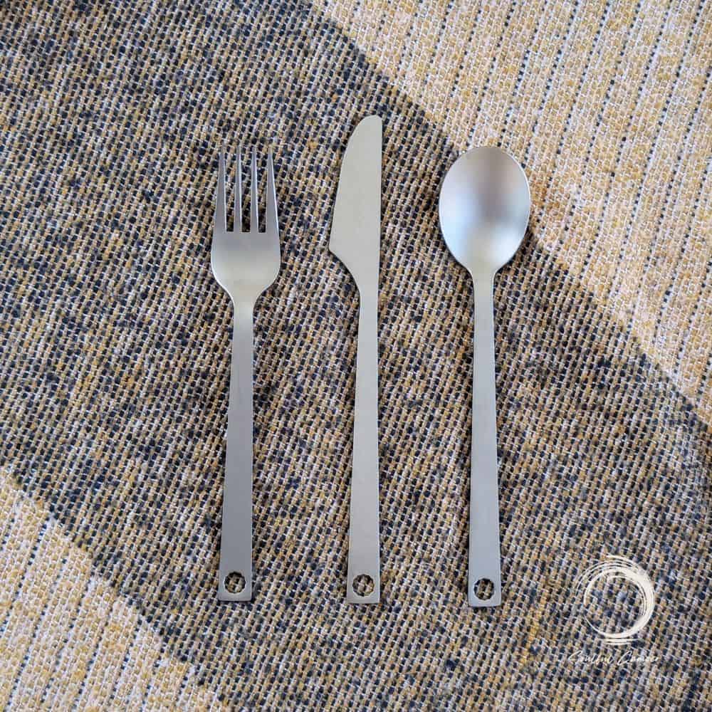 Made from 99.7% titanium, this cutlery set is feather-light and tough enough for both backcountry meals and daily use. - Tooth-Friendly & Biocompatible